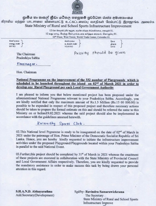 02.03.2021 நாளை அதற்கான செயற்பாட்டினை ஆரம்பித்து வைக்கவும் அடிக்கல் நாட்டவும் திரு.அங்கஜன் இராமநாதன் அவர்கள் கலாநிதி விளையாட்டுக்கழகத்தின் அழைப்பினை ஏற்று வருகை தரவள்ளதாக அறியப்படுகின்றது.