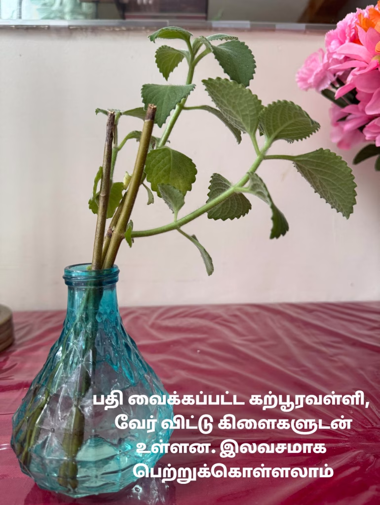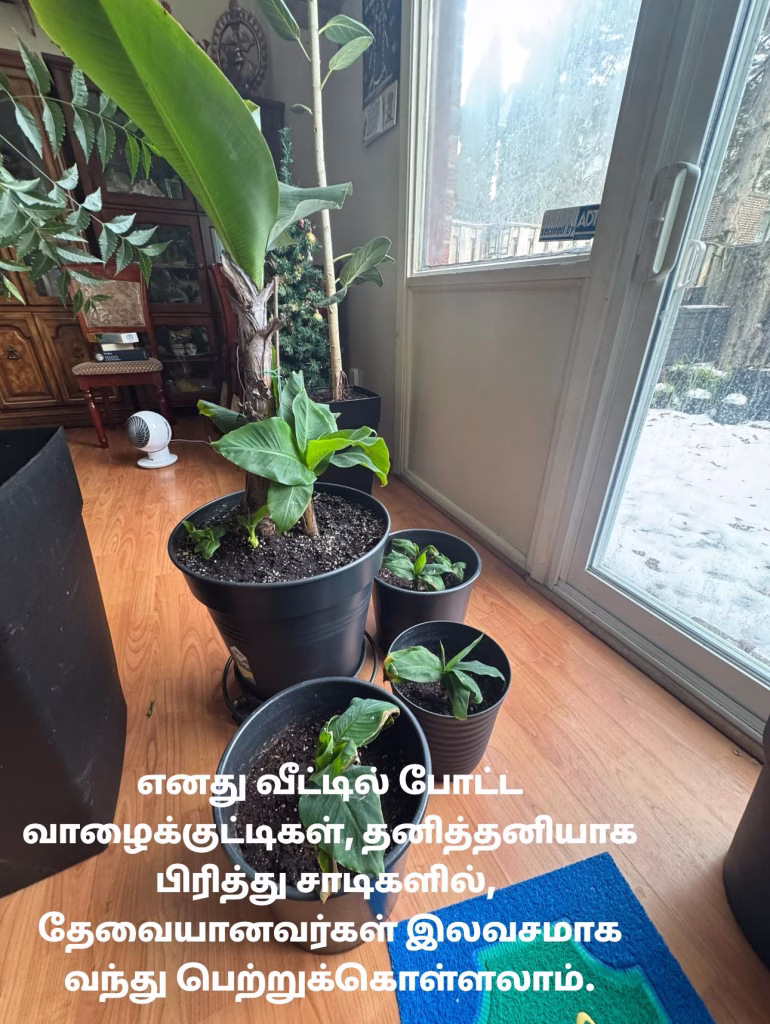கற்பூரவள்ளி, வாழ வைக்கும் வாழை என்பன எனது வீட்டினுள் வளர்ந்ததை பதிவைத்து தயாராக உள்ளன. தேவையானவர்கள் இலவசமாக பெற்றுக்கொள்ளலாம்.