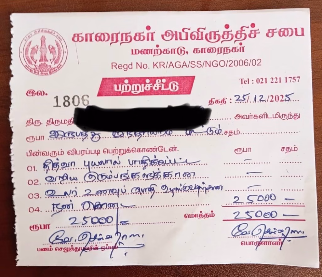 அத்துடன் 12.10.2025 அன்று சடையாளி கேணி இறைத்து துப்பரவாக்கப்பபட்டதன் பின்னர் மிகுதியான நிதி 22,085 ரூபாய்களும் காரைநகர் அபிவிருத்தி சபையினரிடம் ஒப்படைக்கப்பட்டது.