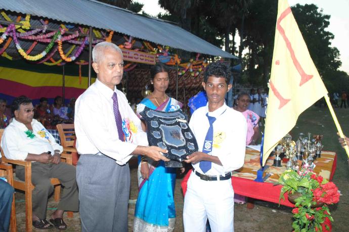 பிரதம விருந்தினர் னுச.ளு.சிவநாதன்(விலங்கு உற்பத்தி மற்றும் சுகாதார திணைக்கள வடமாகாண பணிப்பாளர்) இல்லங்களில் 504 புள்ளிகளை பெற்று முதன்மையிடத்தை பெற்றுக்கொண்ட பாரதி இல்ல தலைவர் அவர்களிற்கு வெற்றிக் கேடயத்தை வழங்கினார்.