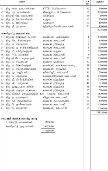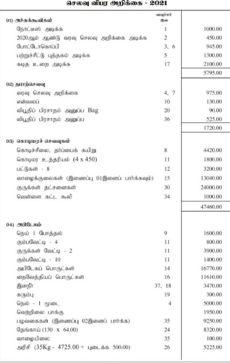 2021 வரவு செலவு விபரம் கீழே இணைக்கப்பட்டுள்ளது