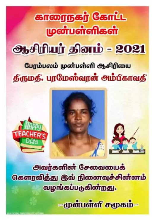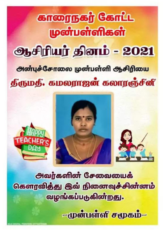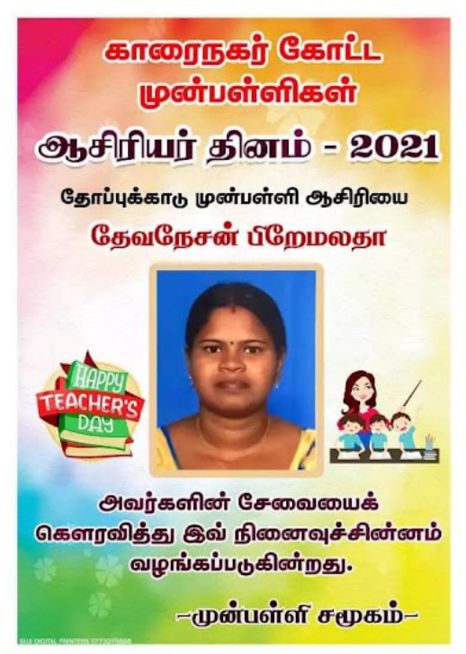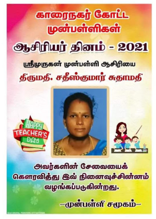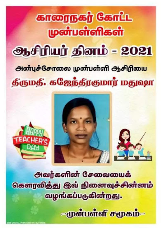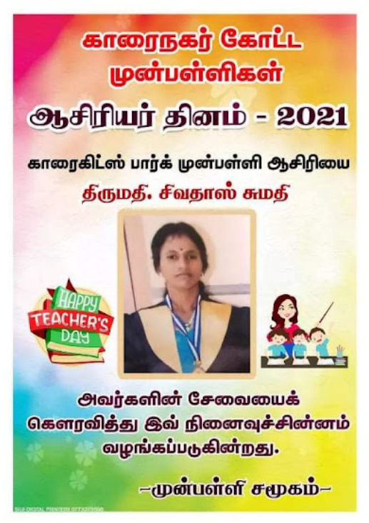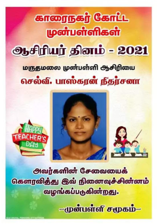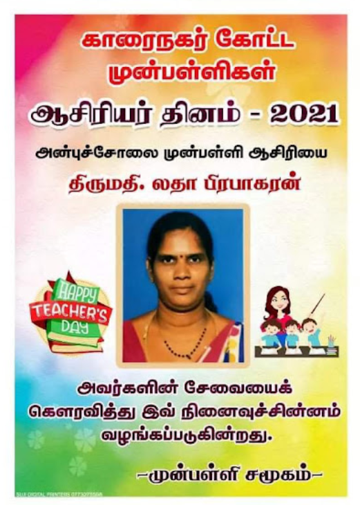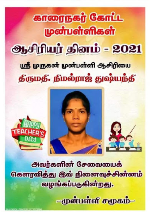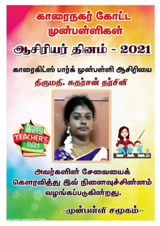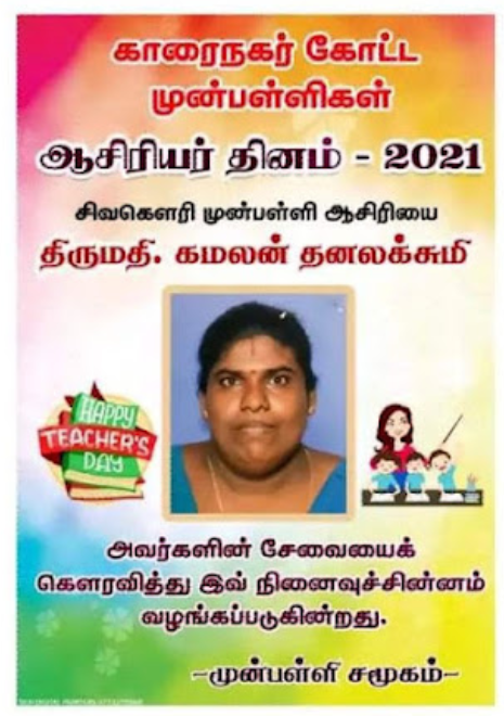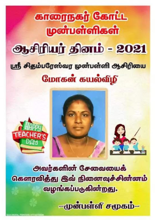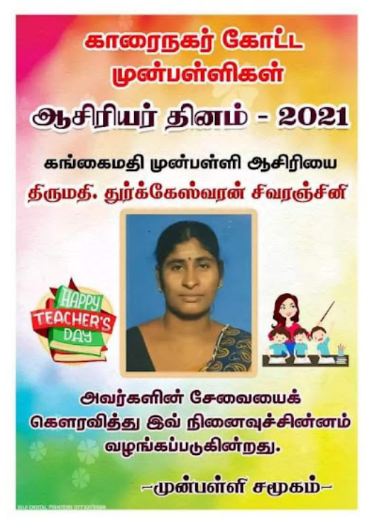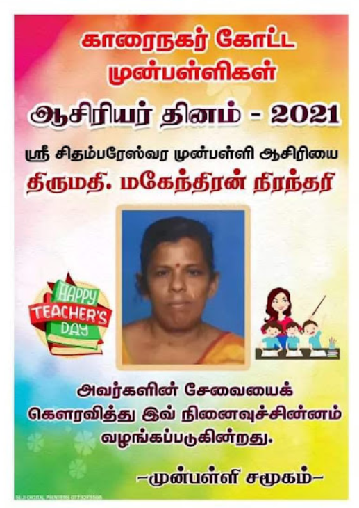 காரைநகர் முன்பள்ளிகள் ஆசிரியர்கள் விபரங்களை தெரிந்து கொள்வோம். 22.10.2021 அன்று நடைபெற்ற ஆசிரியர் தின விழாவின் போது கௌரவிக்கப்பட்ட முன்பள்ளி ஆசிரியர்கள் விபரம்