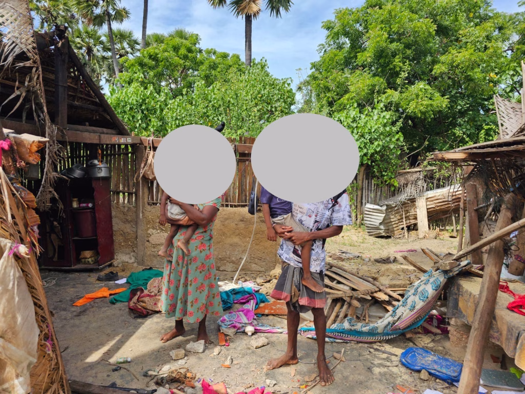 மூன்று பிள்ளைகளை உடைய கூலி தொழில் புரிந்துவரும் ஐந்து உறுப்பினர்களைக் கொண்ட குடும்பம் மேற்படி குடிசை வீட்டில் வசித்து வந்துள்ளனர். தெய்வாதீனமாக இவர்கள் உயிர் பிழைத்துள்ள போதிலும் குடிசை வீடு முற்றாக சேதமடைந்துள்ளது.