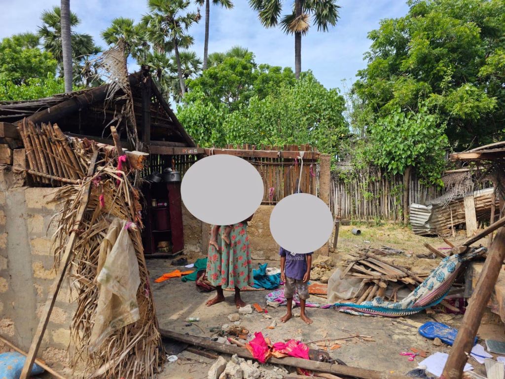 காரைநகர் பிரதேச செயலக பொருளாதார உத்தியோகத்தர் மற்றும் இப்பகுதி கிராம சேவகர் திரு.மயூரன் அவர்கள் சென்று பார்வையிட்டுள்ளதுடன் அரச உதவியினை உடனடியாக பெற்றுக்கொடுக்க முடியாத சூழ்நிலையில், 2 வயது, 5 வயது, 9 வயது மூன்று குழந்தைகளின் நிலமை அறிந்தும் உடனடியாக இந்த குடிசை வீட்டினை மீள திருத்தியமைக்க ஊர் உறவுகளின் உதவியினை பெற்று நல்குமாறு ‘எனது ஊர் காரைநகர்’ தீசன் திரவியநாதனை தொடர்பு கொண்டு அறியப்படுத்தியுள்ளனர்.