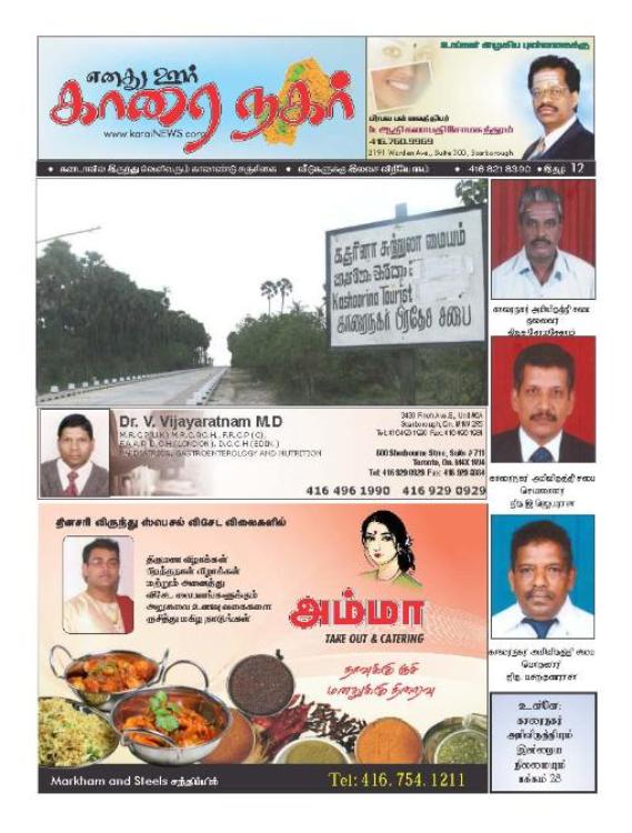 | e-mail: theesan@karainews.com fbjj; njhlu;GfSf;F: 34 - 331 Trudelle Street Scarborough, Ontario M1J 3J9 Canada |